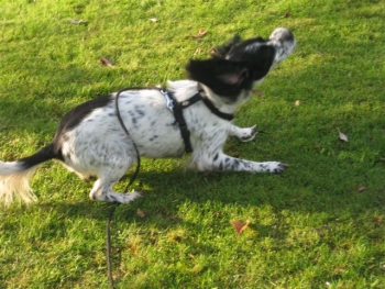 Lea ist den Menschen gegenüber noch etwa scheu, anderen Hunden gegenüber ist sie sehr aufgeschlossen und sehr rudelverträglich. An der Leinenführigkeit muss natürlich gearbeitet werden.