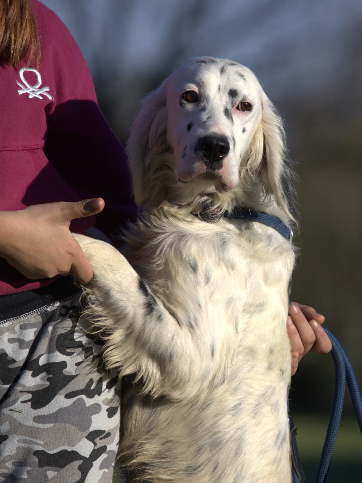 Ein trauriger junger Setter, der von Jaeger abgegeben wurde, um Platz fuer einen Wurf zu schaffen. Er ist ein sehr geselliger und verschmuster Hund, der die Aufmerksamkeit im Tierheim sichtlich geniesst.