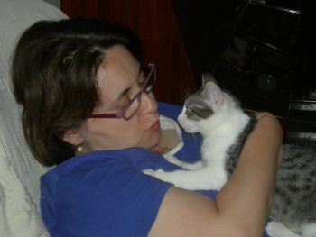 Cara Corinna, ecco altre due foto del nostro (sempre meno) piccolino. Lunedì l'altro, al ritorno dall'ambulatorio veterinario (dove l'avevo portato per il richiamo della vaccinazione), il timido Cisko si è definitivamente trasformato in Plinio il tenerone. Quando l'ho messo nel trasportino, forse pensava ad un altro trasferimento e poi, quando l'ho riportato a casa, si è rilassato. Prima si faceva accarezzare solo mentre mangiava ed ora (non sempre, è ovvio) cerca le coccole. Gioca e salta incurante del caldo e mangia con appetito. Il resto della famiglia è in campagna per qualche giorno e ieri sera, tornando a casa, ho trovato Lilli, Linneo e Plinio che mi aspettavano insieme dietro la porta: adesso Plinio fa proprio parte della famiglia. Un caro saluto e ancora grazie. Francesco