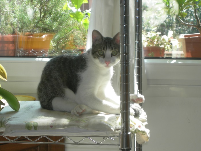 Cara Corinna, ti mando alcune foto recenti di Plinio, mentre fa un riposino sul divano col suo papà adottivo Linneo, mentre si dedica alla "cura" delle orchidee insieme alla Lilli e, infine, da solo. Come si può vedere è bellissimo ed è molto cresciuto; è vivace (un atleta), curiosissimo e molto, molto affettuoso. Un caro saluto e a presto. Francesco, con Plinio, Lilli e Linneo