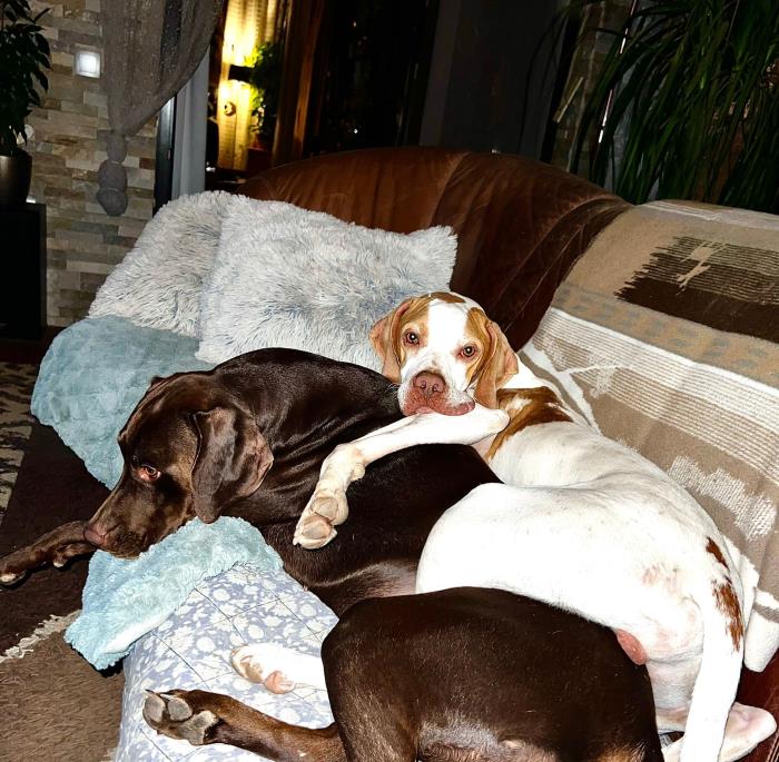 Cacciatore anziano deve sottoporsi ad un importante intervento ortopedico e non può più andare a caccia. Decide quindi di dare alla ns associazione gli ultimi cani da caccia che gli sono rimasti: il setter Tell ed il pointer Drago.