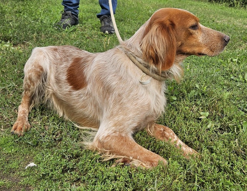 Volontaria di altra associazione in vacanza in Abruzzo ha trovato questo splendido breton vagante. Lo ha accolto e portato al Nord con la speranza di trovargli presto un'adozione. Purtroppo la sua positività alla leishmaniosi ha fatto da deterrente e cosi Brandon attende da mesi la sua occasione.