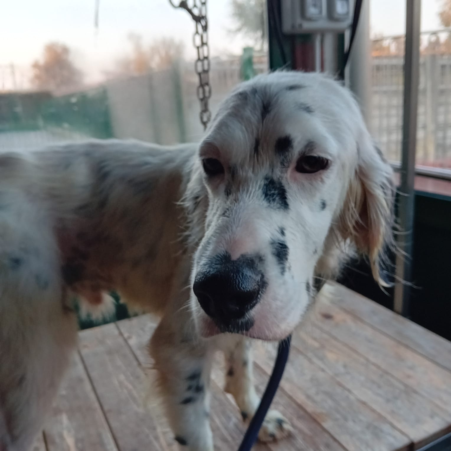 Giovane setter triste scartato dai cacciatori per fare spazio ad una cucciolata. E' un cane molto socievole, coccoloso e che si meraviglia delle attenzioni che riceve in canile.
